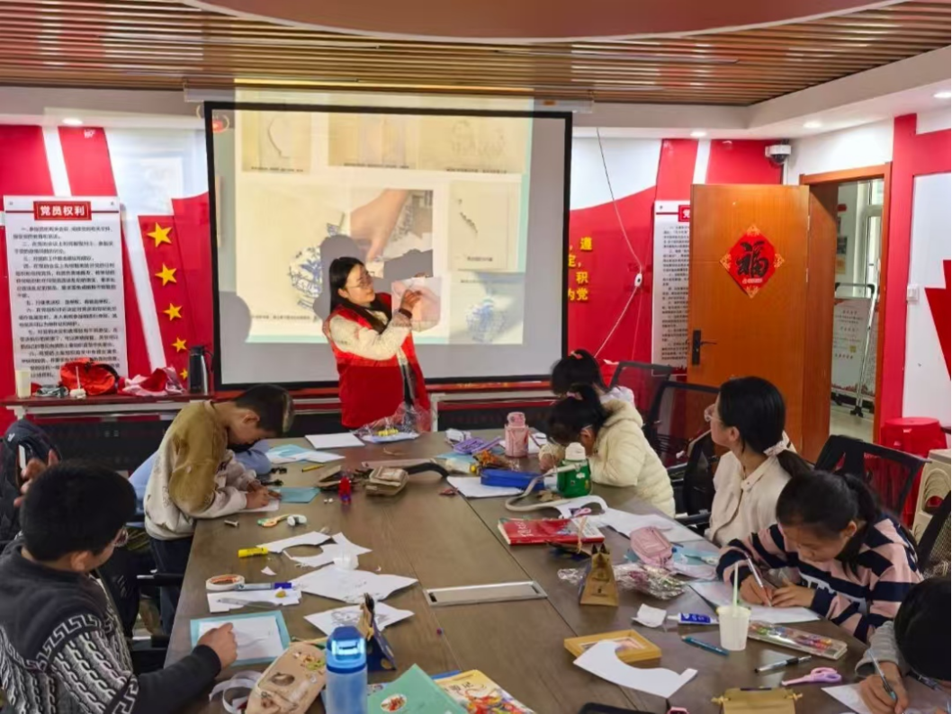 2026年2月26日,济南市历城区建大花园青少年活动室内,山东大学“春禾筑梦”支教队队员开展传统文化实践课程,以立体青花瓷剪纸为核心内容,带领班内二十余名儿童解锁传统工艺新玩法,在沉浸式创作中完成了一场跨越时空的文化对话。