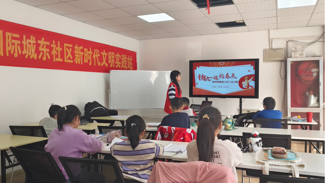 为深入贯彻落实党的二十大精神,传承红色基因,近日,山东大学“齐风鲁韵,红韵新章”实践调研团成员王文茁走进济南市历城区唐冶中新国际城东社区居委会,开展“铁轨一端的春天——胶济铁路线上的工运与新生”专题课程,将红色记忆带入社区课堂。