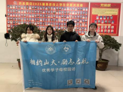 为切实搭建高中与大学教育衔接的桥梁,帮助高中学子破解升学迷茫、树立长远人生目标,山东大学沂路山海宣讲团山东016队紧密围绕“相约山大・励志启航”专项主题,于2026年2月5日赴临沂市沂水县第四中学开展优秀学子母校回访活动。