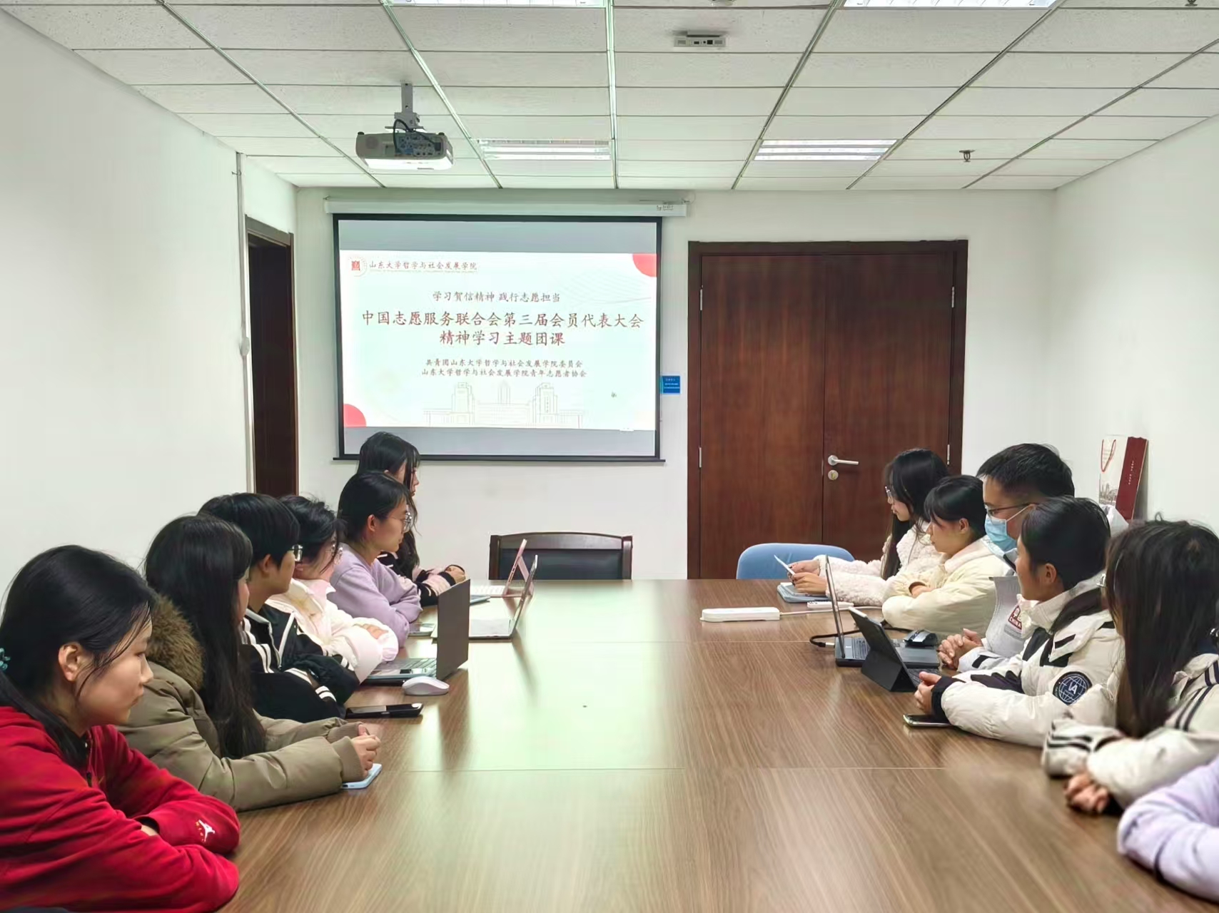 为深入学习习近平总书记致中国志愿服务联合会第三届会员代表大会的贺信精神,推动志愿服务与国家战略深度融合,12月5日,在共青团山东大学哲学与社会发展学院委员会指导下,哲学与社会发展学院青年志愿者协会于知新楼A1606开展“学习贺信精神,践行志愿担当”中国志愿服务联合会第三届会员代表大会精神学习主题团课,引导青年学子以志愿行动诠释担当。