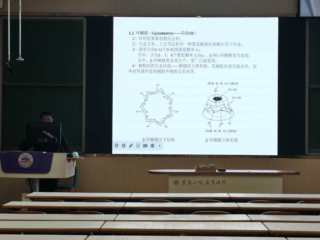 为帮助同学们更好了解前沿化学领域,2025年11月30日,化学与化工学院学生会开展“化时代”专场讲座活动,邀请郝爱友教授分享环糊精的发明过程以及广泛的作用,激发各位同学对化学领域更深一步了解。