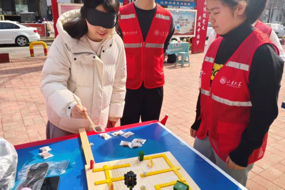 三月春风拂面,雷锋精神薪火相传。为进一步普及无障碍设施知识,传递关爱视障群体的温暖理念,让尊重与包容的种子扎根大众心底,山东大学“明眸启航,视界无疆”志愿服务团借着学雷锋志愿服务月的契机,走进济南花园小区,开展了一场别开生面的助残公益体验活动。团队以趣味互动+沉浸式体验的形式,带领社区居民、小朋友近距离感受视障人士的日常困境,用实打实的行动诠释志愿初心,让“理解、关爱、守护”的助残新风尚在社区蔓延。带着对公益的热忱与对特殊群体的关怀,志愿服务团提前精心筹备活动细节,结合社区全年龄段人群的认知特点,把晦涩的无障碍科普知识转化为生动易懂的讲解、趣味十足的互动游戏和沉浸式体验项目,摒弃空洞说教,用贴近生活的方式,让每一位参与者都能走心感受、真心共情,为这场暖心志愿活动筑牢根基。