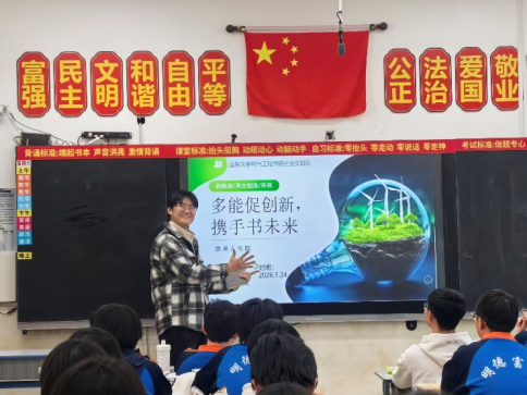冬日暖阳映照下的鄂尔多斯市第三中学校园,一场关于绿色未来的对话正热烈展开。近日,一支来自山东大学电气工程学院的母校回访团队重返这里,以“多能促创新,携手书未来”为主题,开展新能源与环保宣讲调研活动。团队成员以实际行动传播绿色发展理念,在与学弟学妹的深入交流中践行服务初心,在扎实调研中彰显奉献价值。