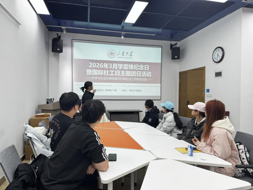 为传承雷锋精神,践行社会工作专业使命,3月17日,山东大学哲学与社会发展学院2024级社会工作班团支部顺利召开“2026年3月学雷锋纪念日暨国际社工日主题团日活动”,支部全体团员参会,活动由团支书主持,凝聚青春力量,彰显社工担当。