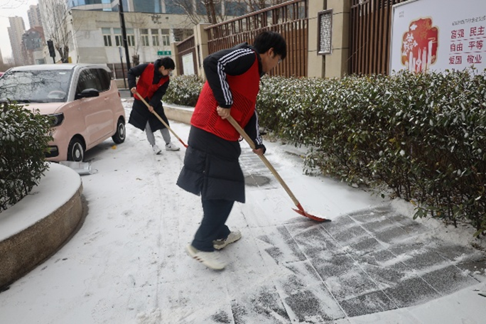 新学期伊始,济南迎来大雪天气,路面结冰、积雪堆积,寒风凛冽。山东大学集成电路学院“集暖巷陌”社区科普队顶风冒雪,走进济南市历下区环保科技园社区居委会,开展张贴传单、安全科普、扫雪铲雪等一系列志愿服务,以青春行动暖化寒冬,用点滴担当守护社区平安。