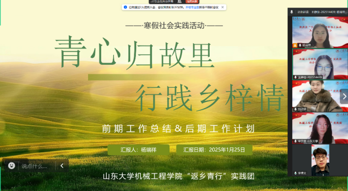 为深入贯彻 “把论文写在祖国大地上” 的实践要求,践行 “为天下储人才,为国家图富强” 的校训精神,山东大学机械工程学院 “返乡青行” 实践团近日正式启动寒假社会实践活动。