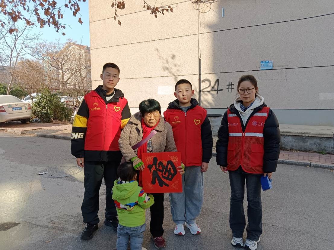 2月11日,北方小年刚过,化纤社区内年味渐浓。山东大学青年志愿者联合会“杏暖化纤,医护童心”社会实践队携手社区初高中生志愿者,共同开展“墨香迎新春,福字暖邻里”送福字活动。