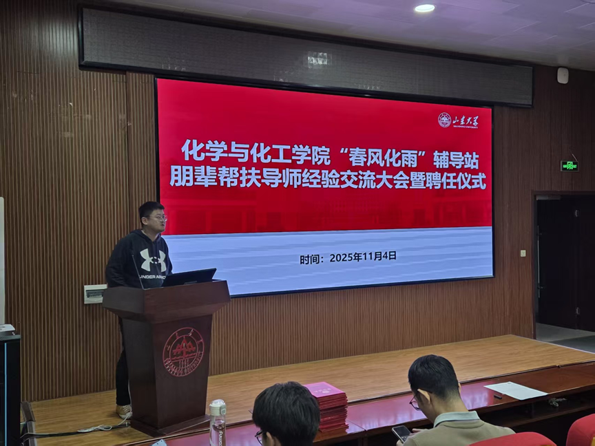 11月4日,化学与化工学院举办“春风化雨”辅导站朋辈帮扶导师经验交流大会暨聘任仪式,学院党委副书记孙国翠、团委书记吕永胜出席活动,各年级辅导员、党支部成员和朋辈导师代表参与活动。