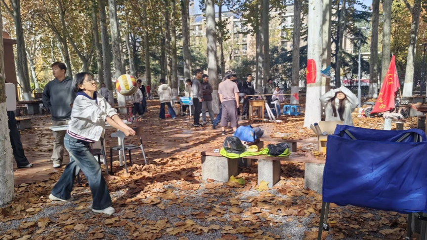 为响应山东大学贯彻落实体育强国战略的目标,坚持增强体育育人功能,同时推广排球文化,播撒热爱排球的种子,2025年11月9日,山东大学学生排球协会举办了“跃动山大“专项活动之“一击入魂”排球垫球挑战赛。本次活动地点位于山东大学中心校区小树林,并以展台的形式、面向全体山大学生开展,累计吸引了近100人次参与其中。